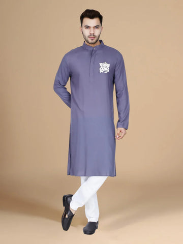 Work: Zari resham work Color: Grey Fabric: Rayon Neck: Stand Collar Kurta Length: 46 Inches...