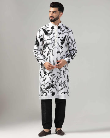 Work: Resham thread works Color: Off-White Fabric: Chanderi Article Type: Kurta only Neck: Stand Collar...