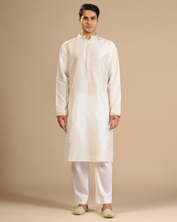 Product Code: RRP039 Brand: Rngreza Color: Off-White Fabric: Dupion silk Title: Elegant Off-White silk kurta...