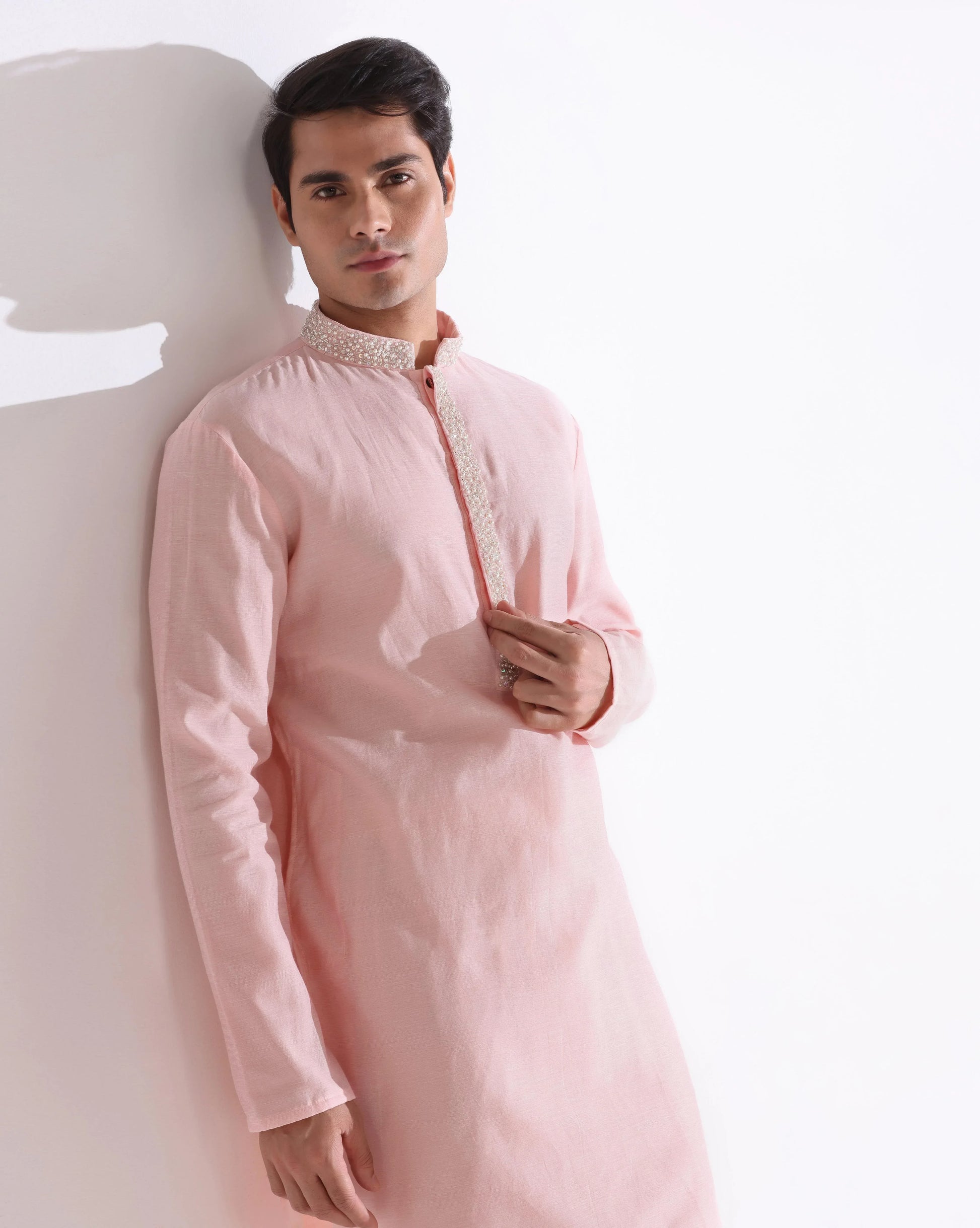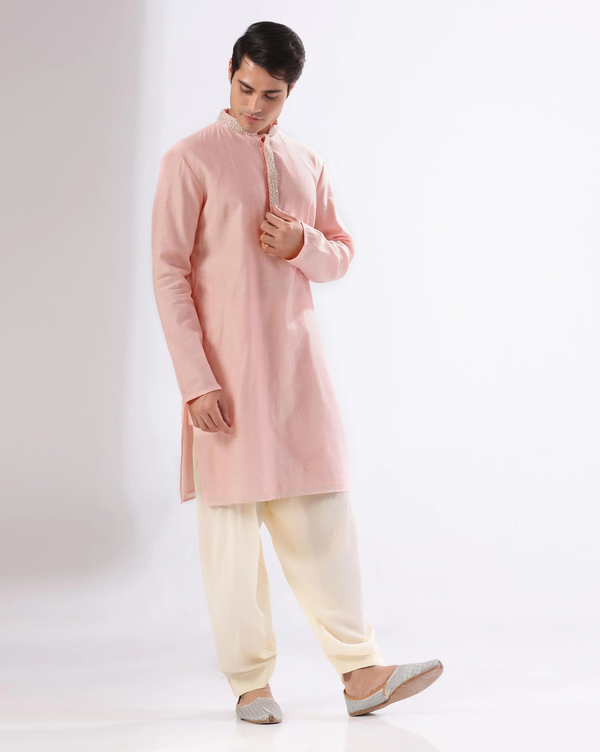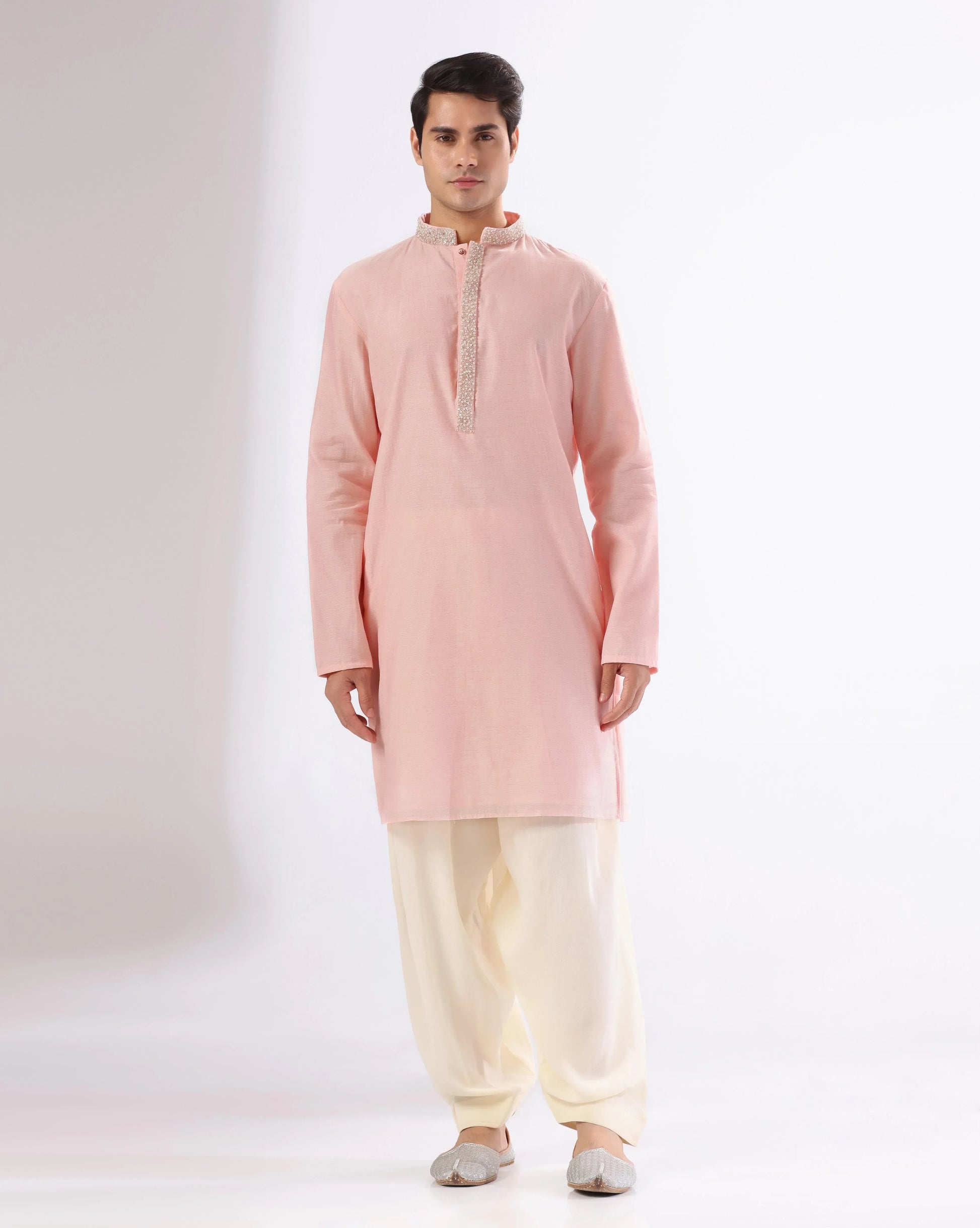 Pink pearl work kurta set for men