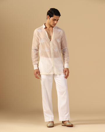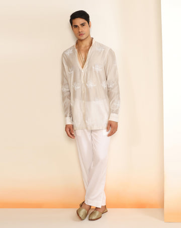 Work: Resham thread works Color: Off-White Fabric: Chanderi Article Type: Kurta only Neck: Stand Collar...