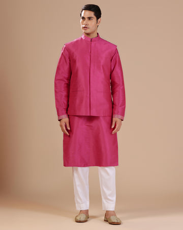 Work: Cut and sew work Color: Hot Pink Fabric: Dupion Silk Neck: Stand Collar Length:...