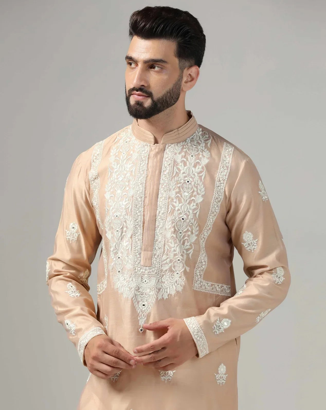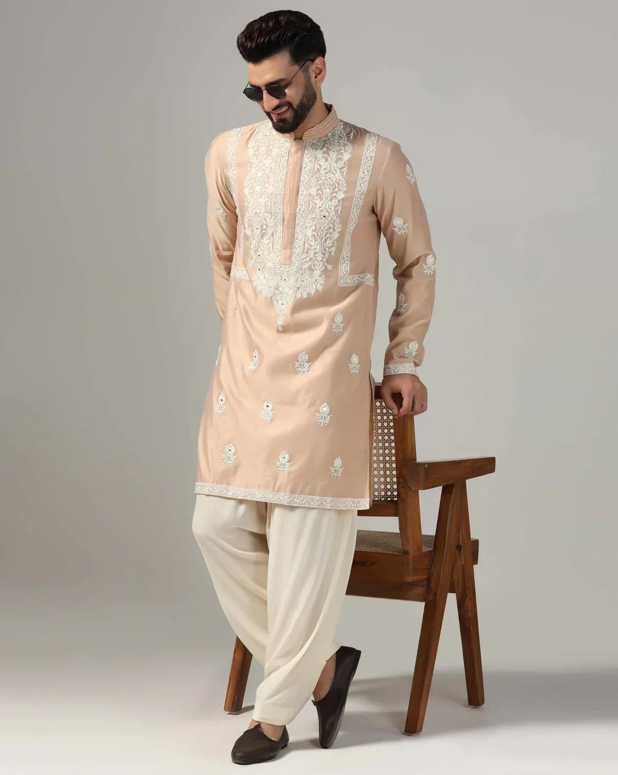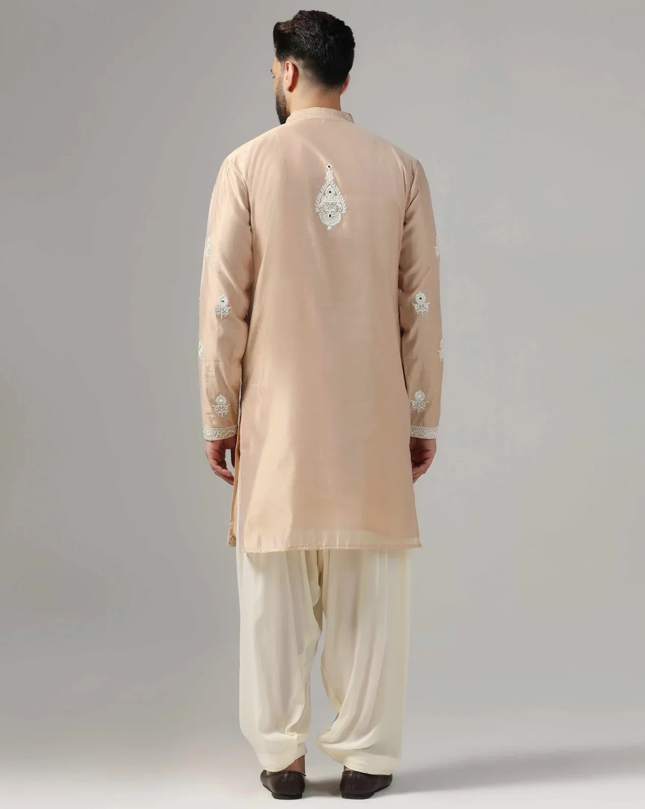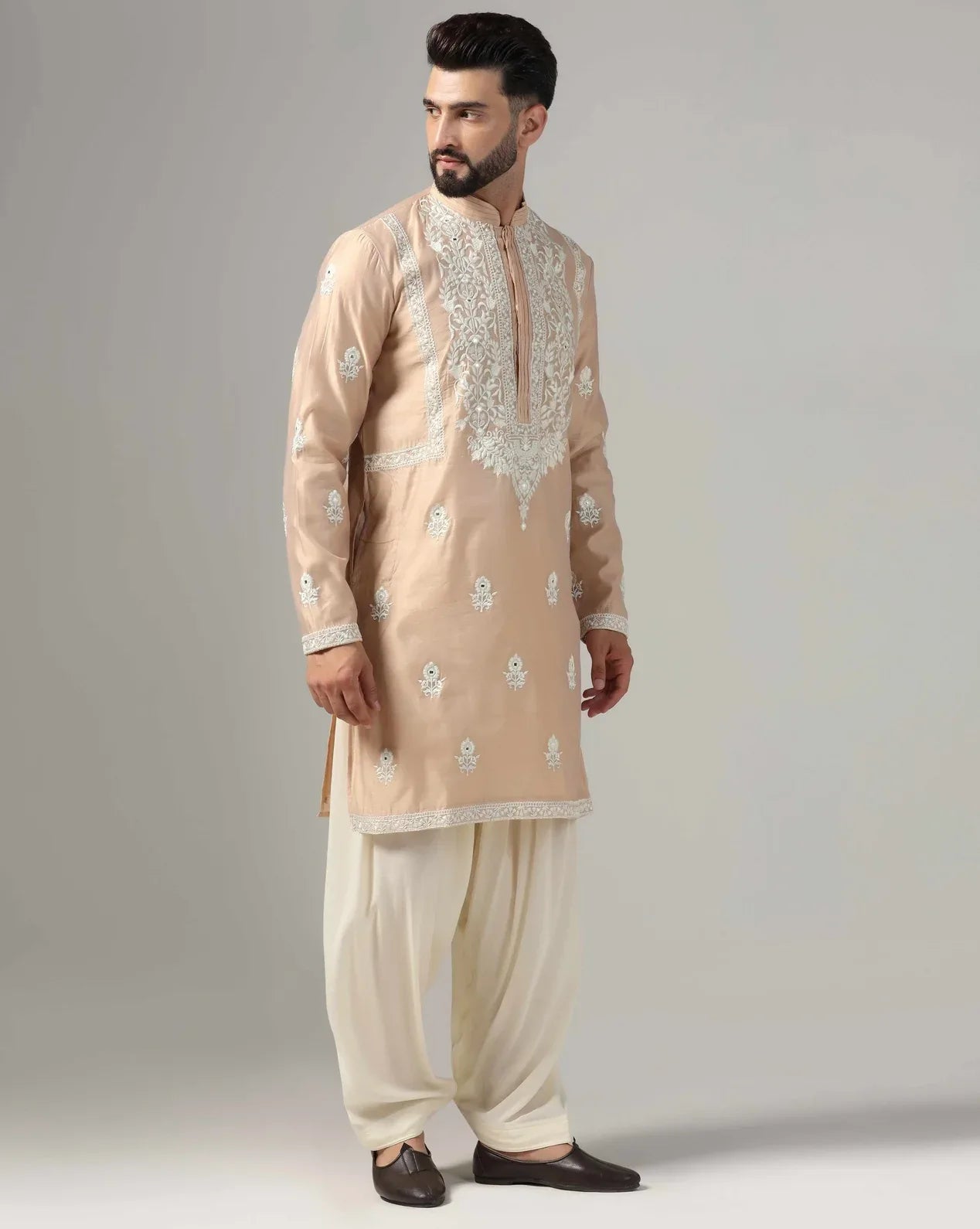 Classic Gold Men's Embroidered Kurta Salwar Set