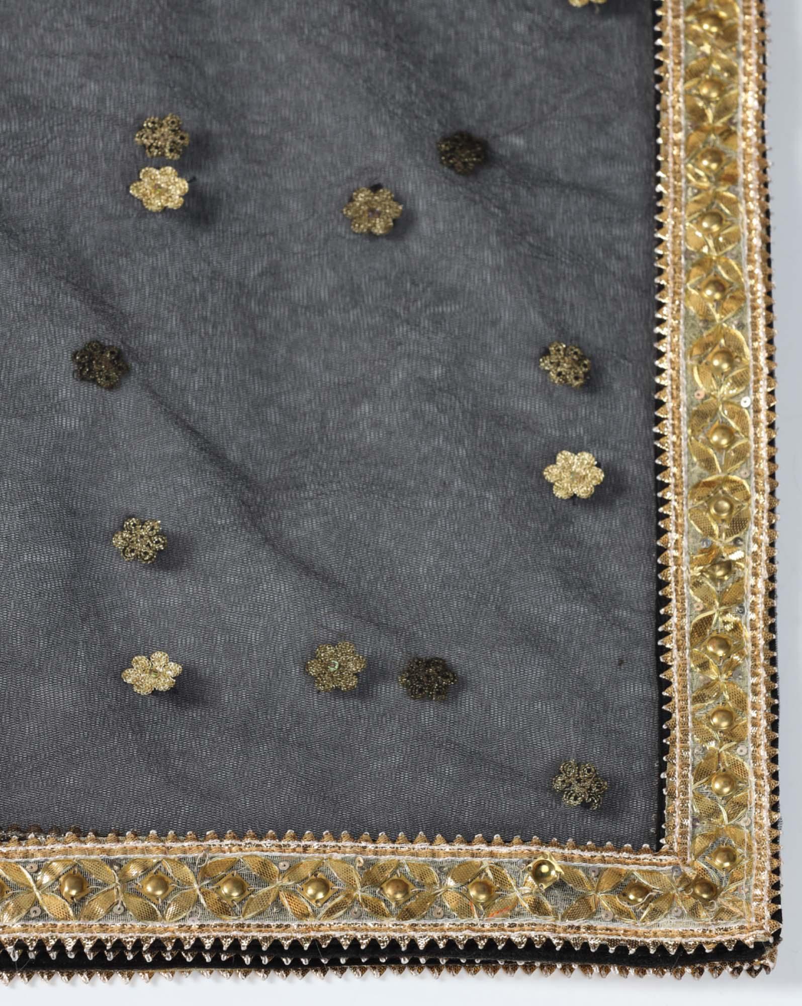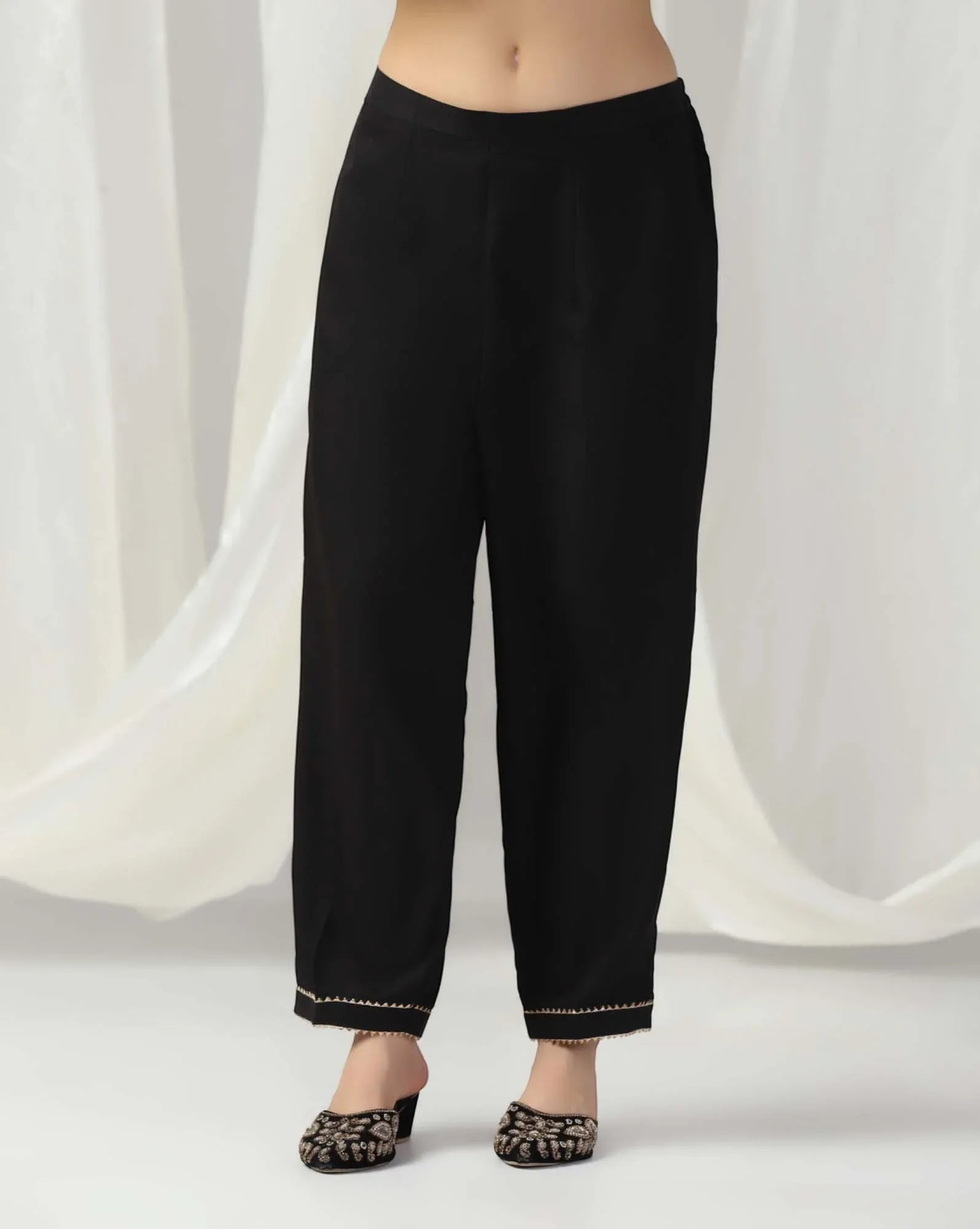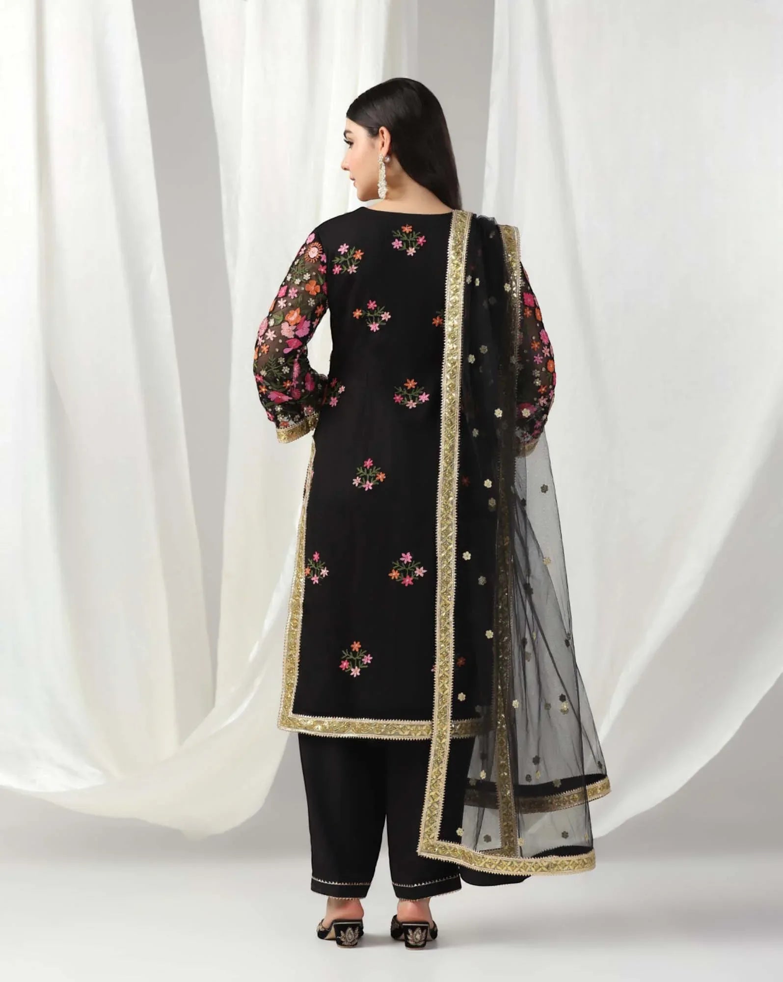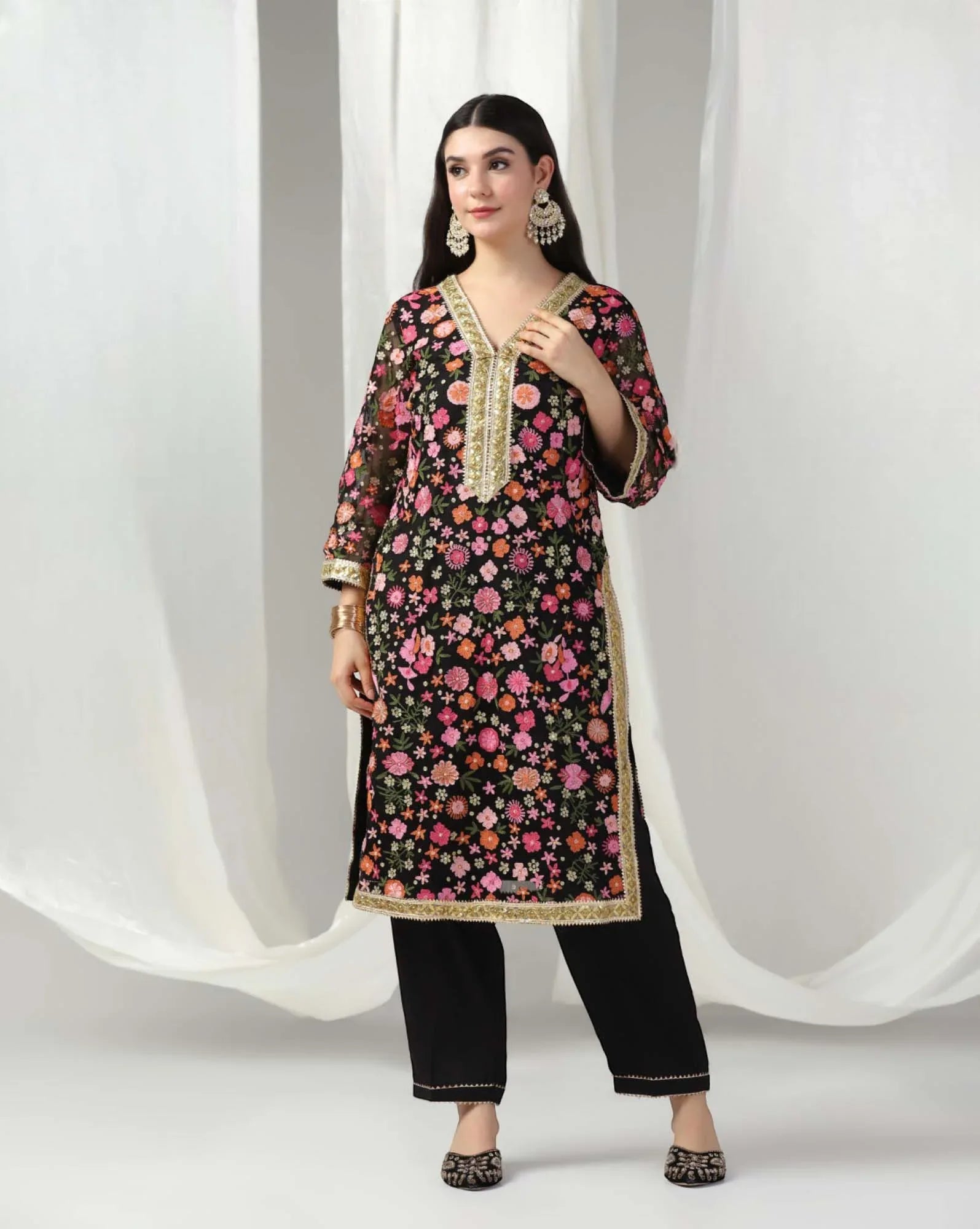Black aari thread embroidered kurta with crepe pants and dupatta