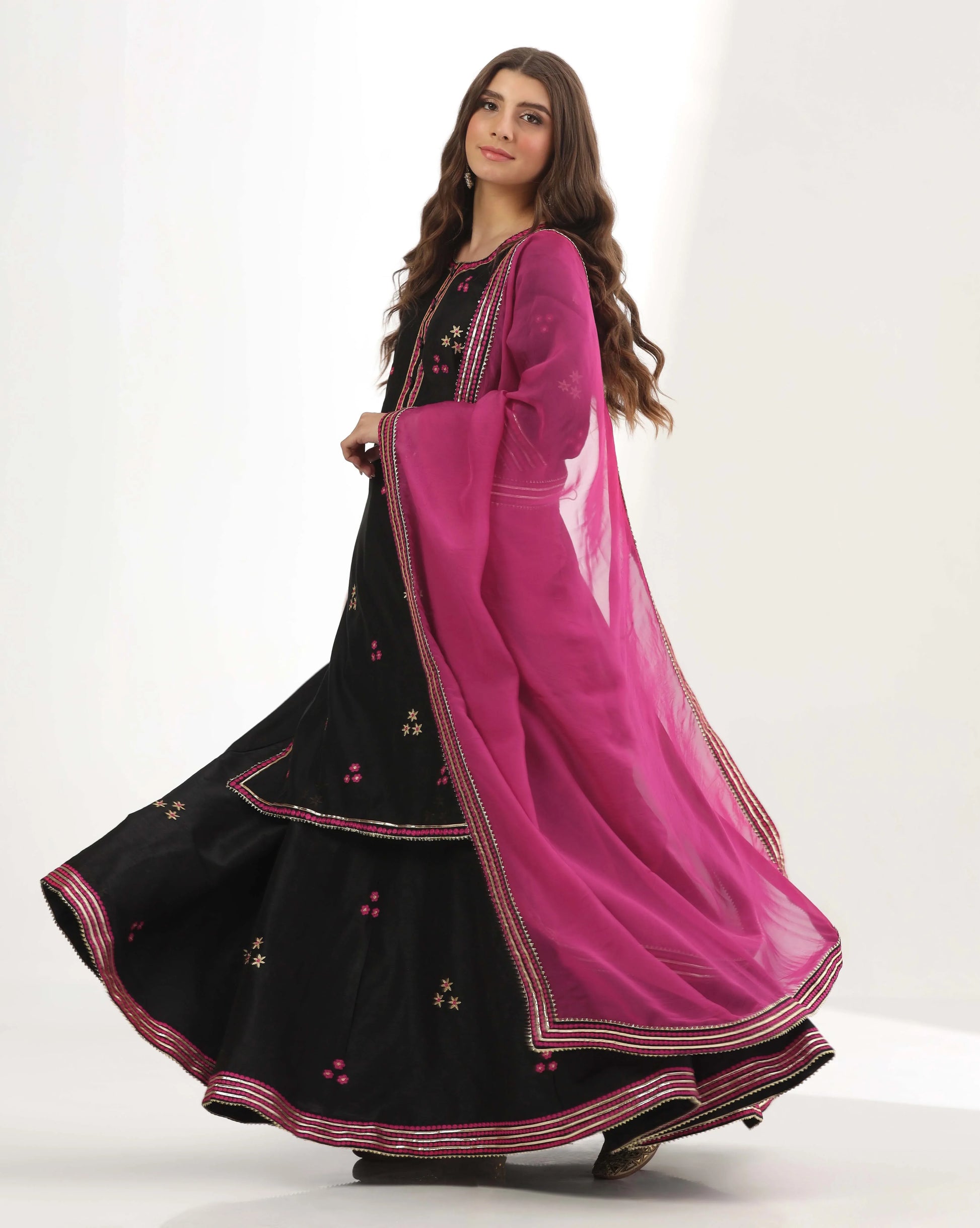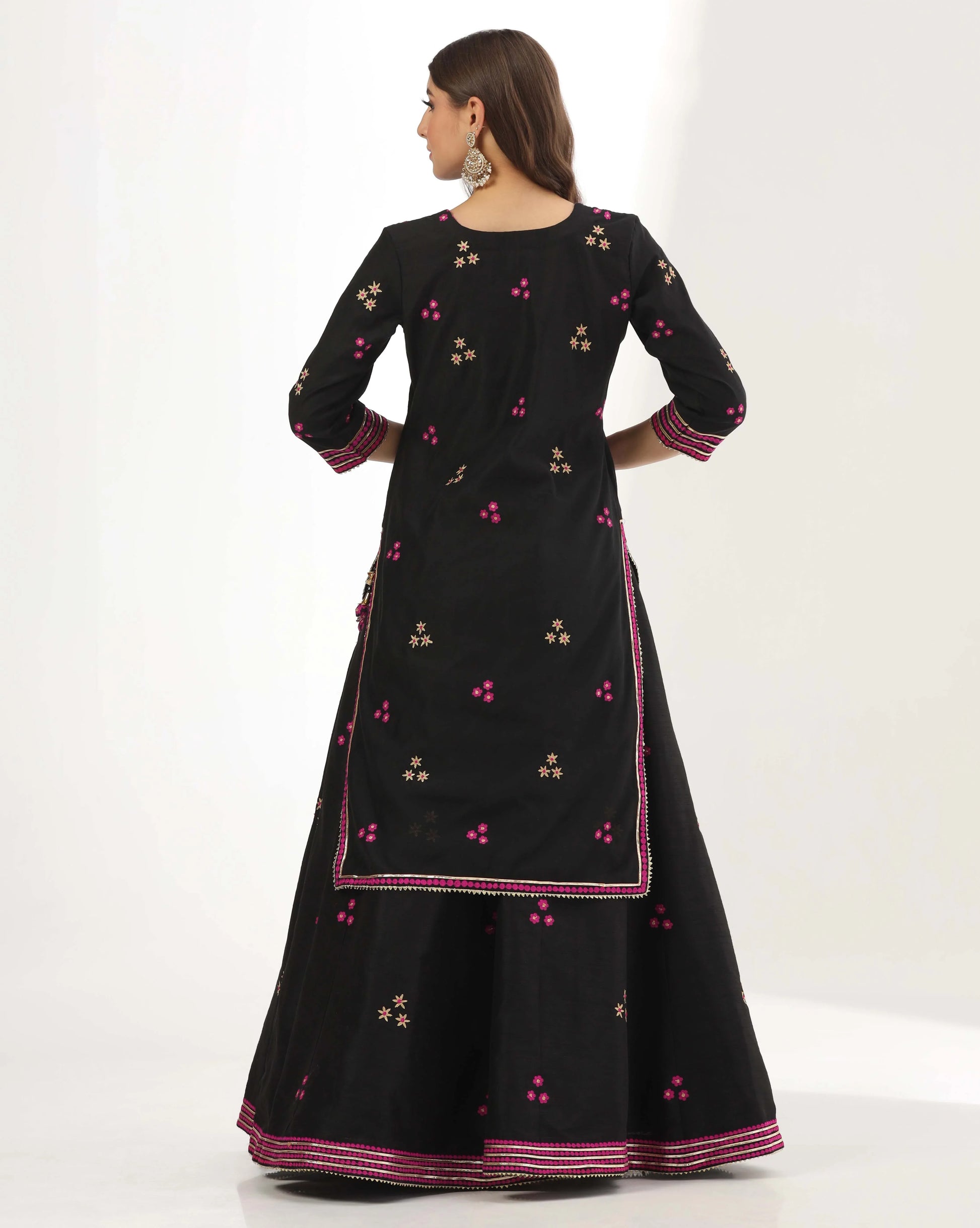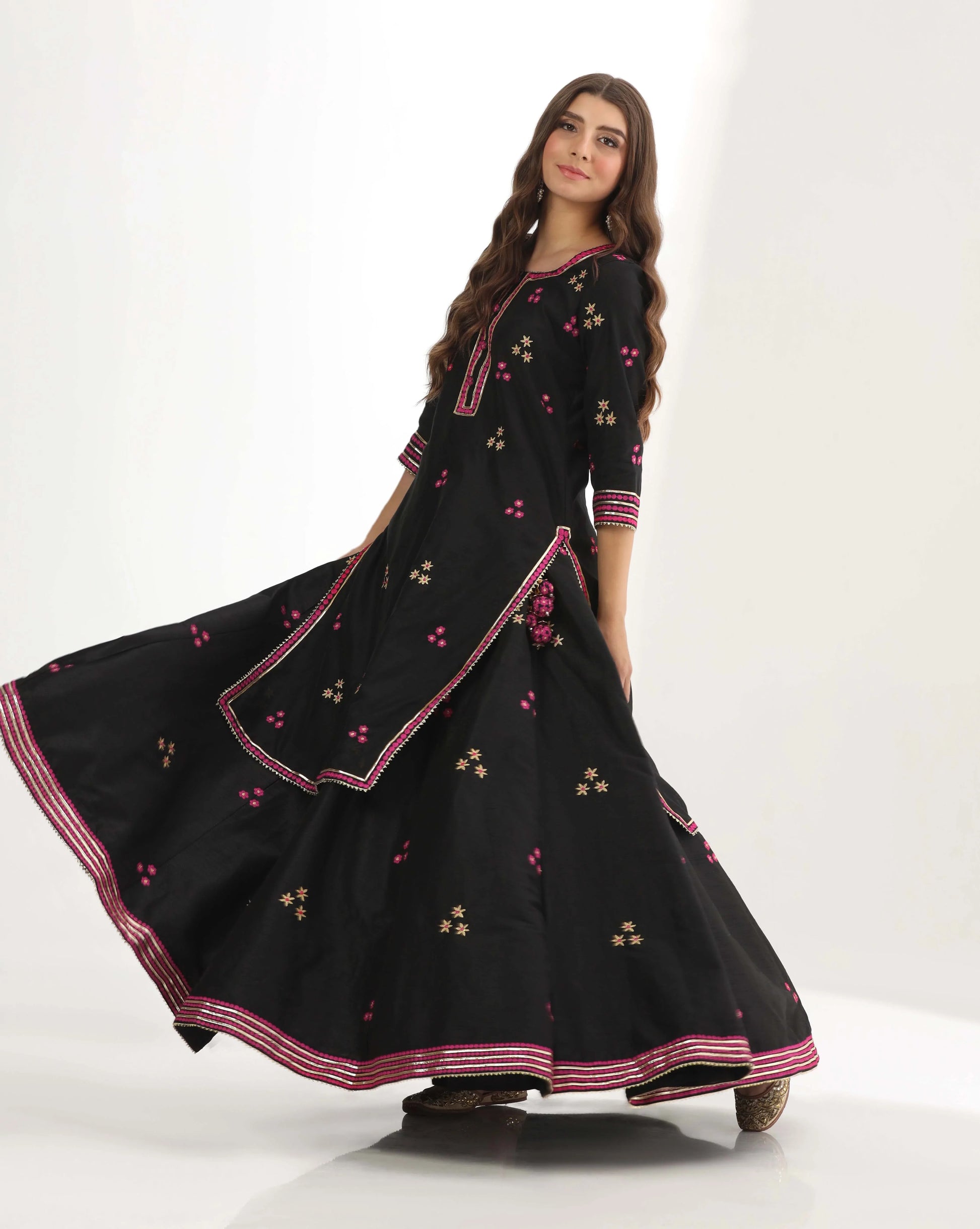Black chanderi long Kurti lehenga
