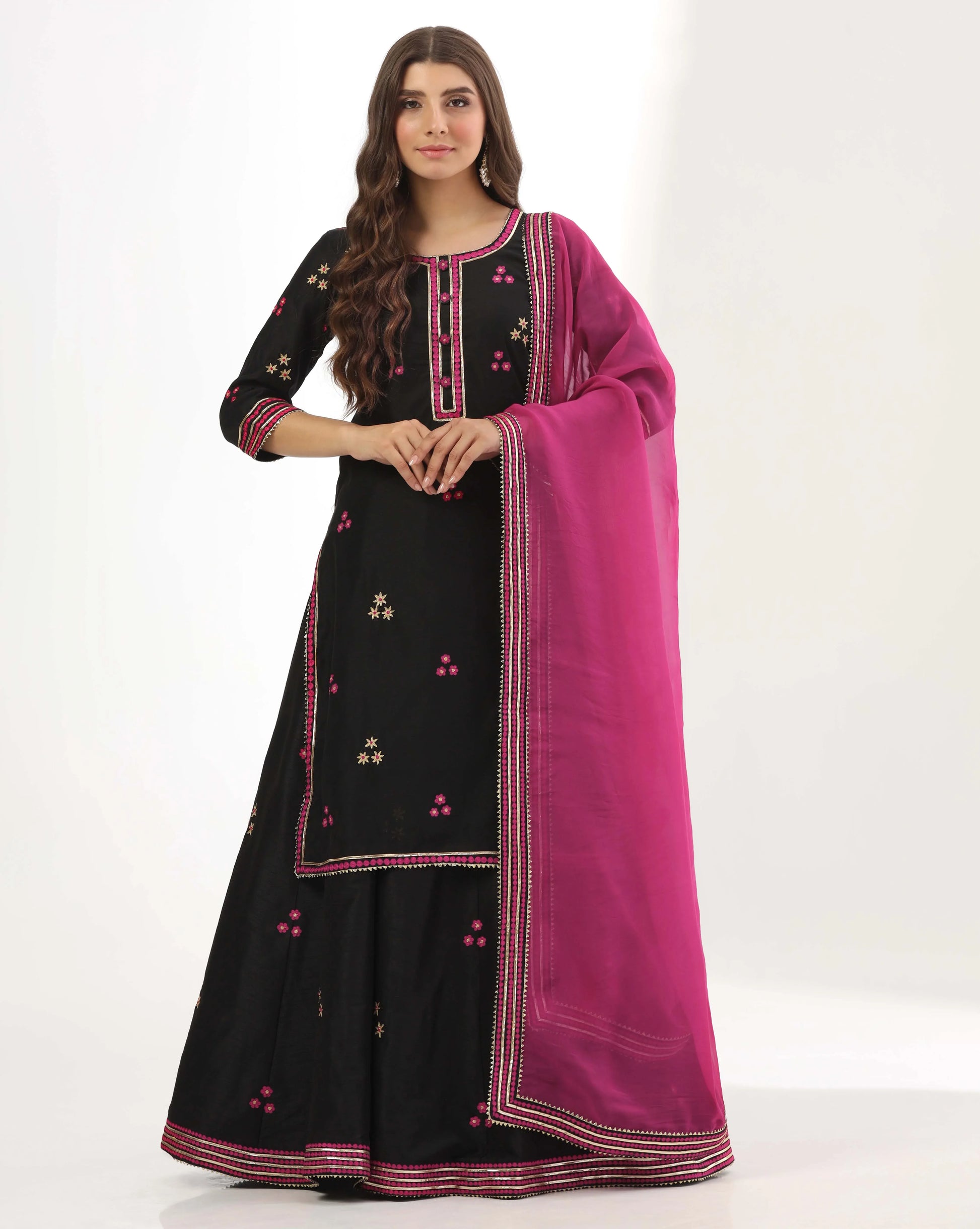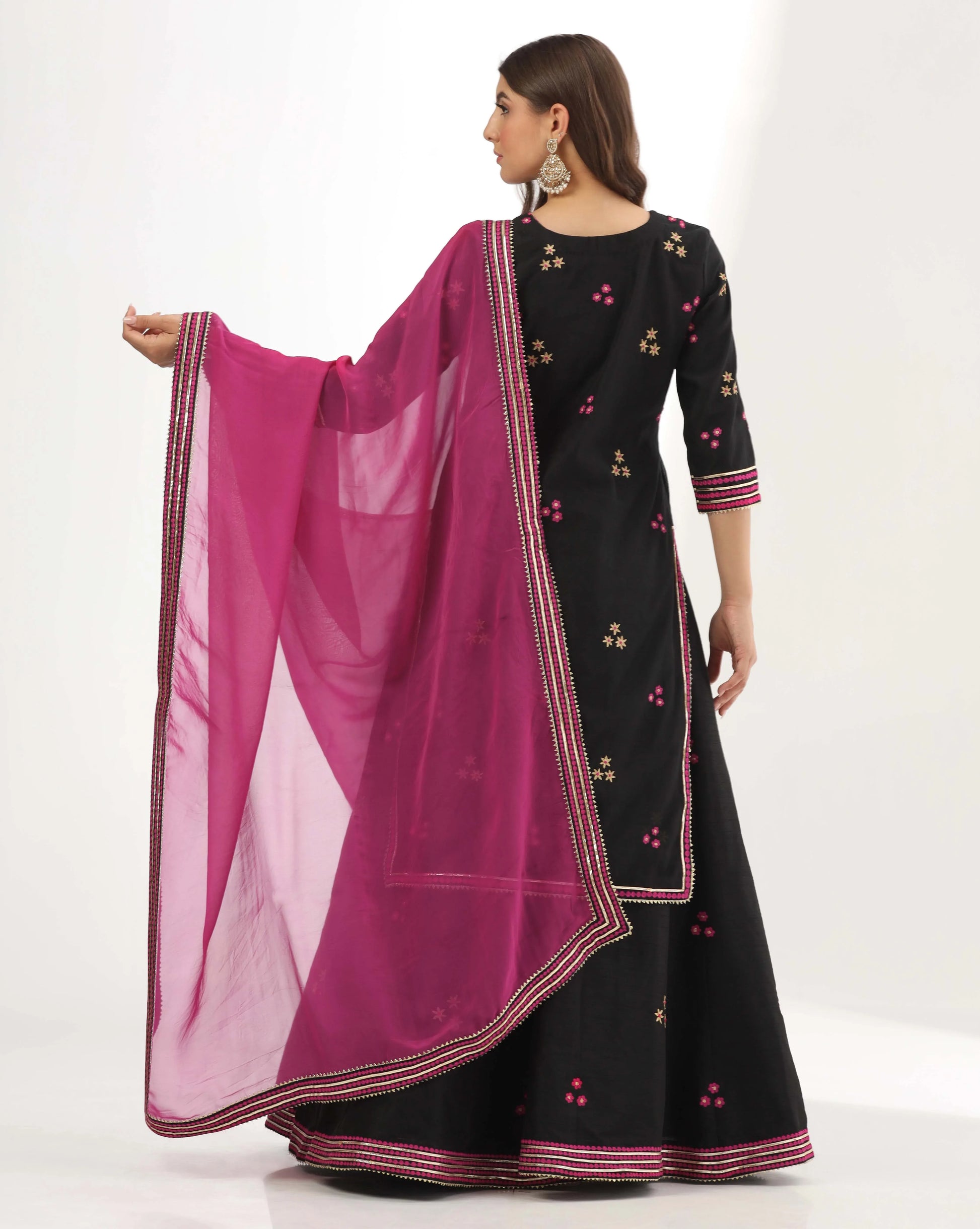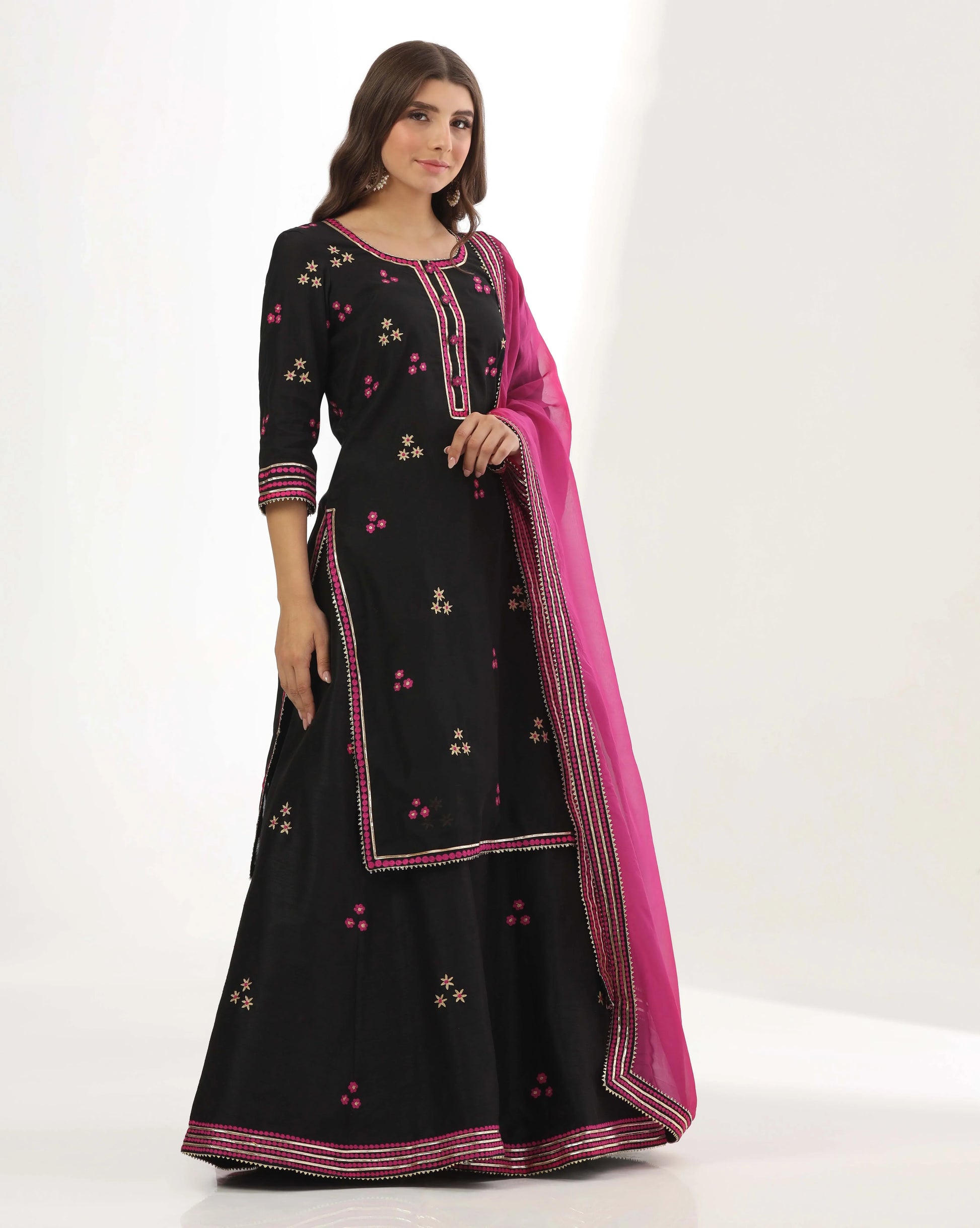Black chanderi long Kurti lehenga