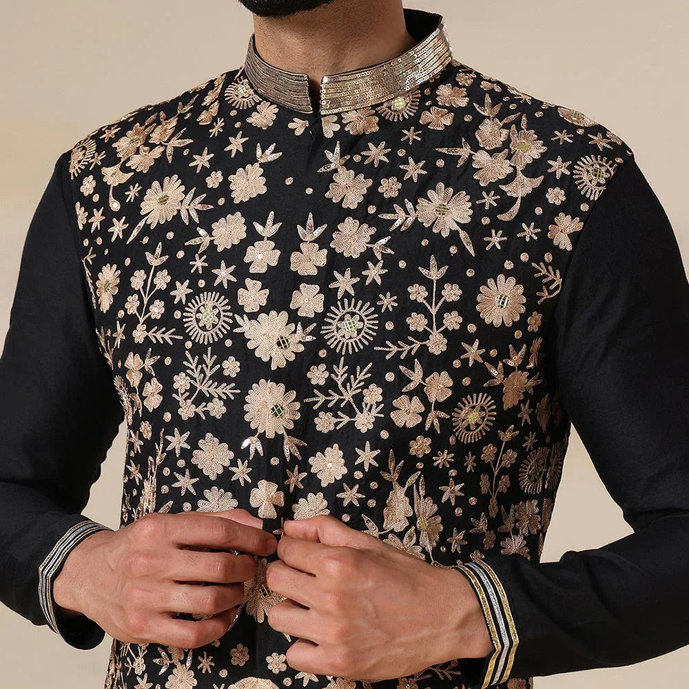 Black embroidered mens nehru jacket