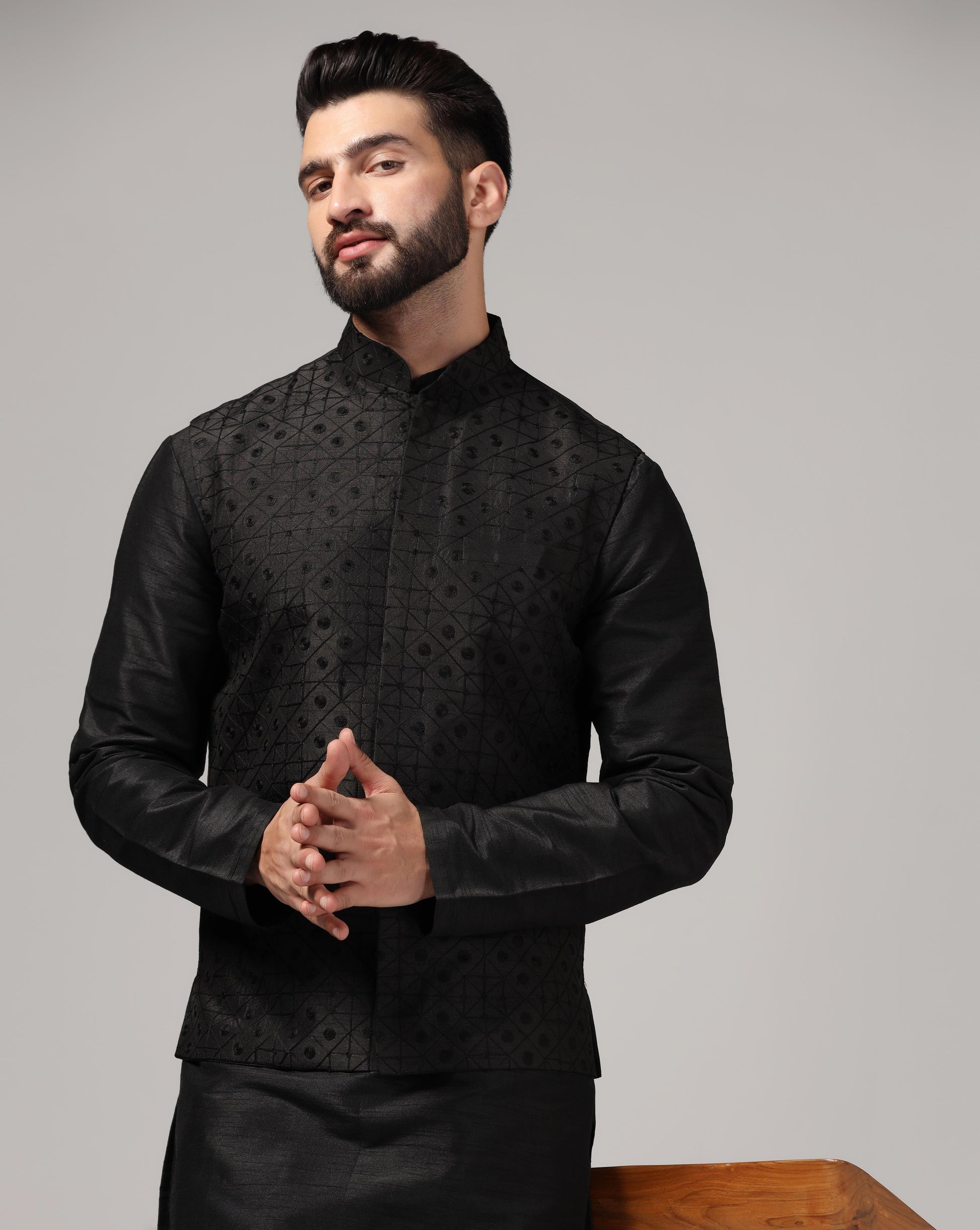Classic black mens nehru jacket