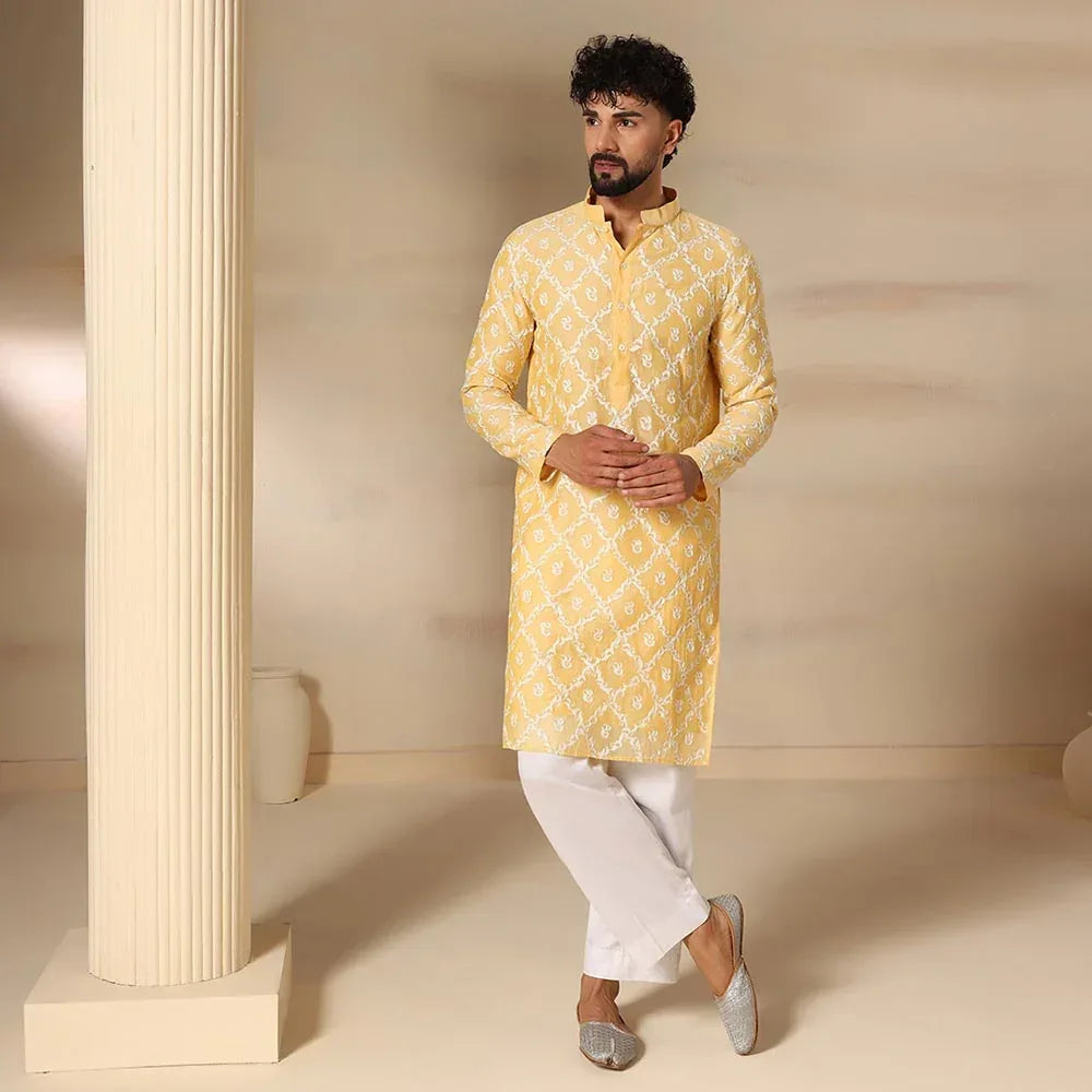 Classic mens yellow kurta