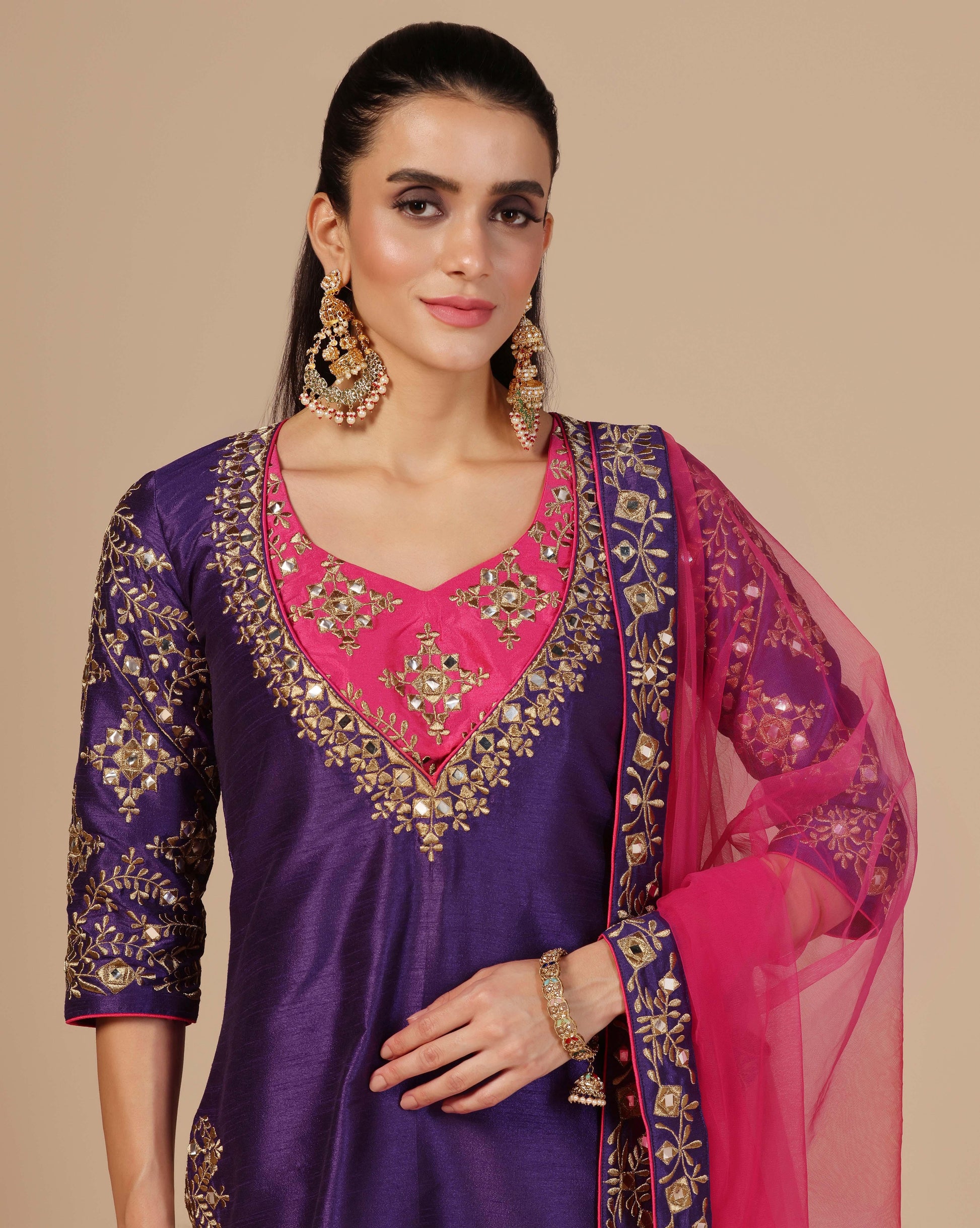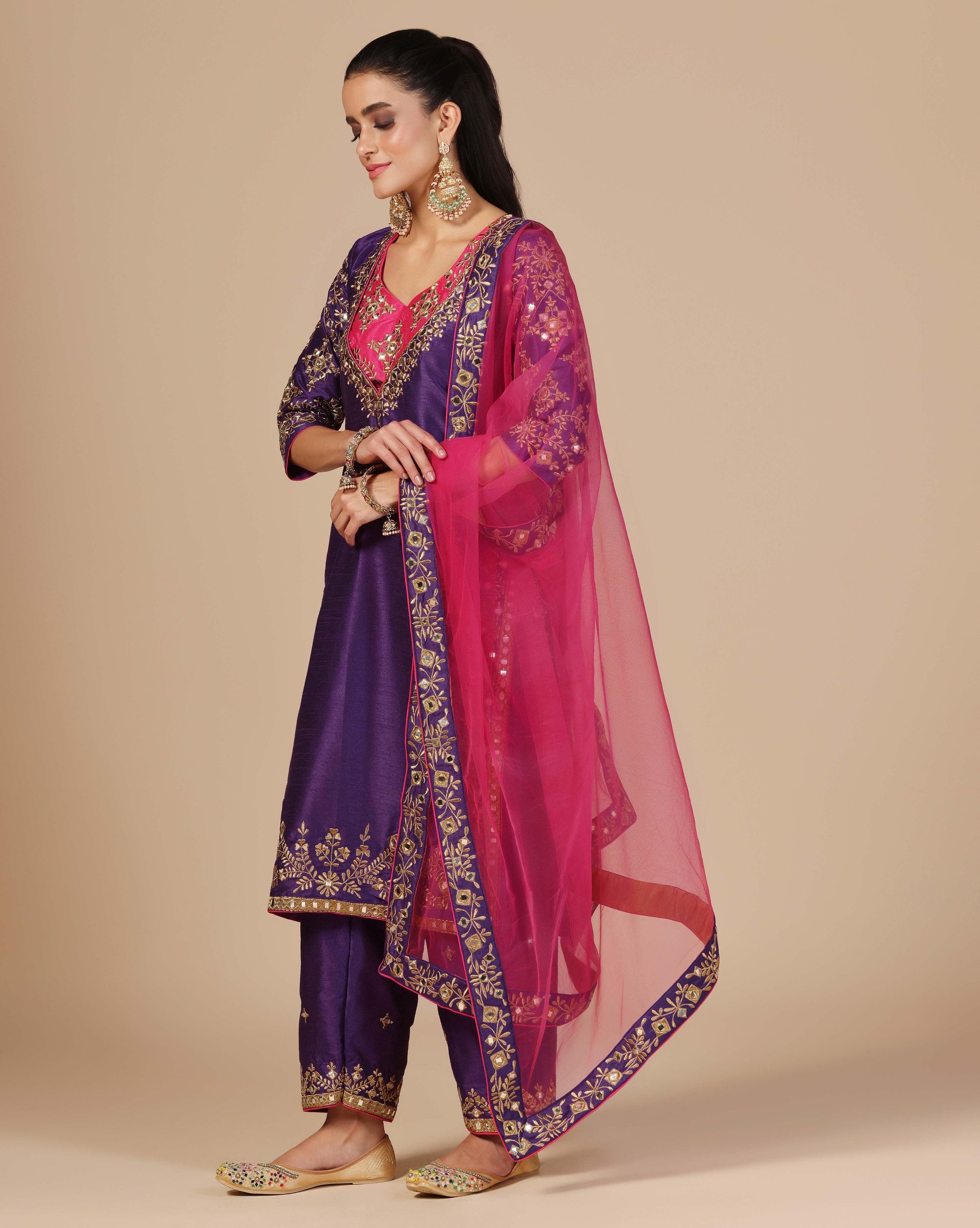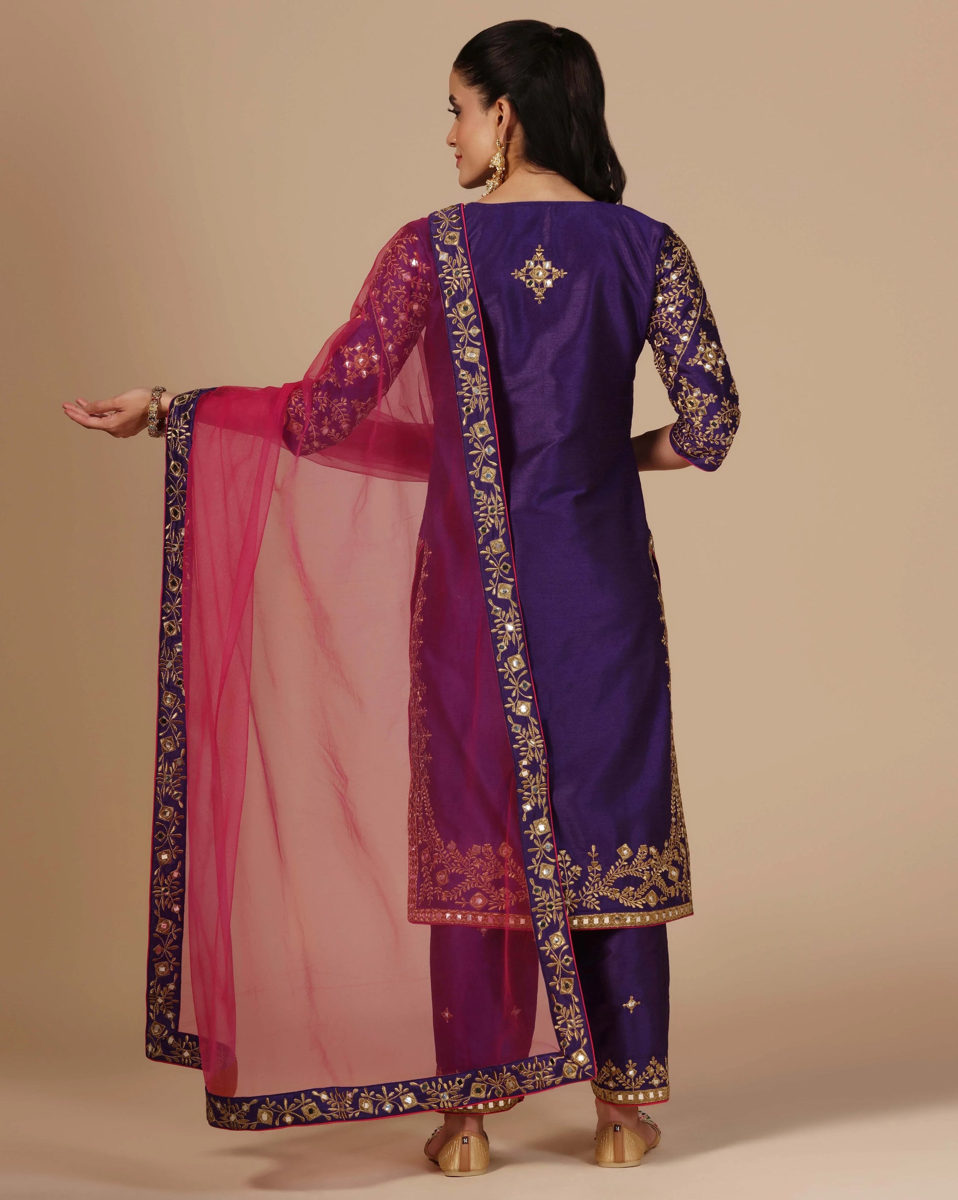 - Handle with utmost love and care, as each piece is crafted with intricate detailing and fine fabrics.” Dry clean only