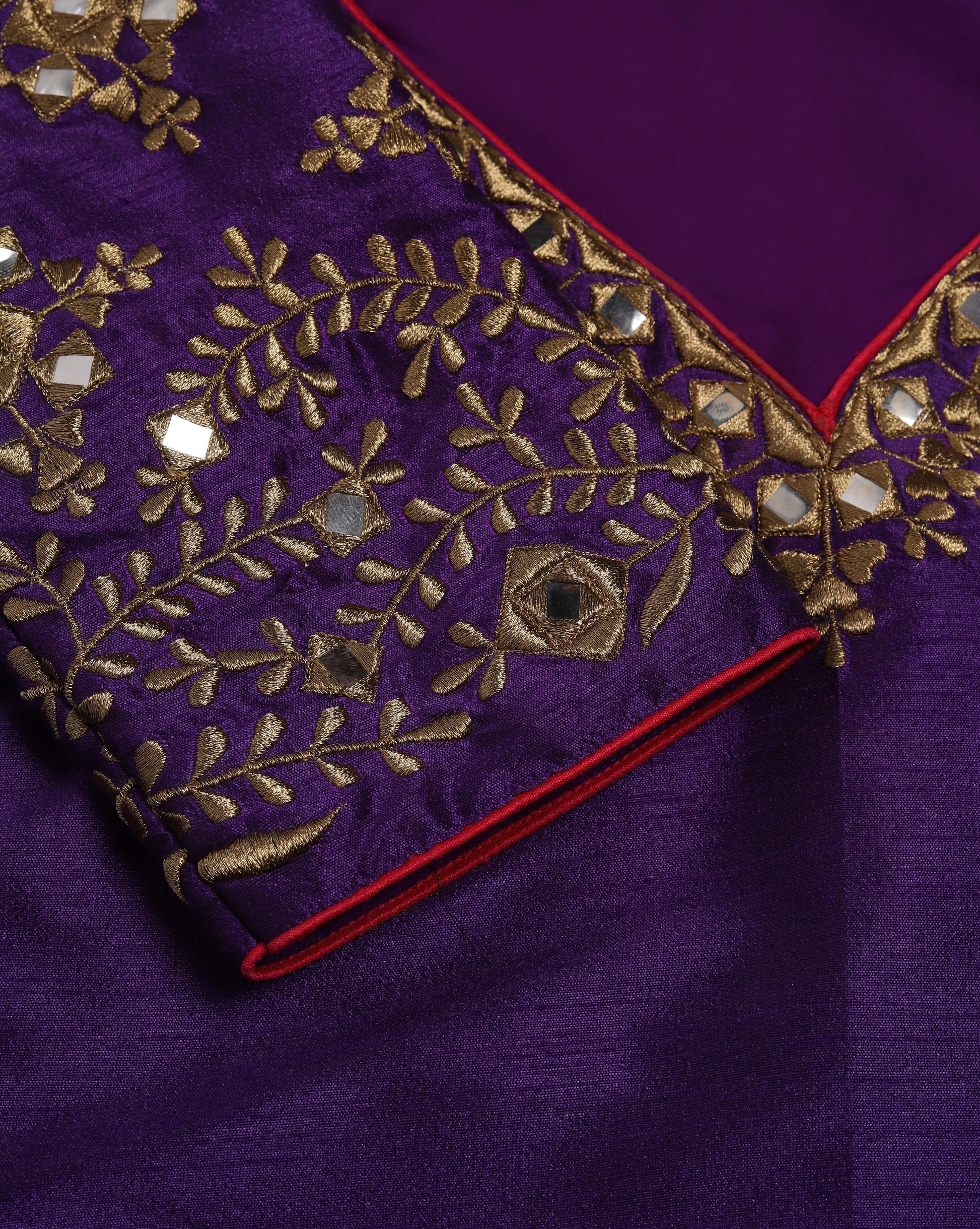 Golden zari embroidery with mirror work