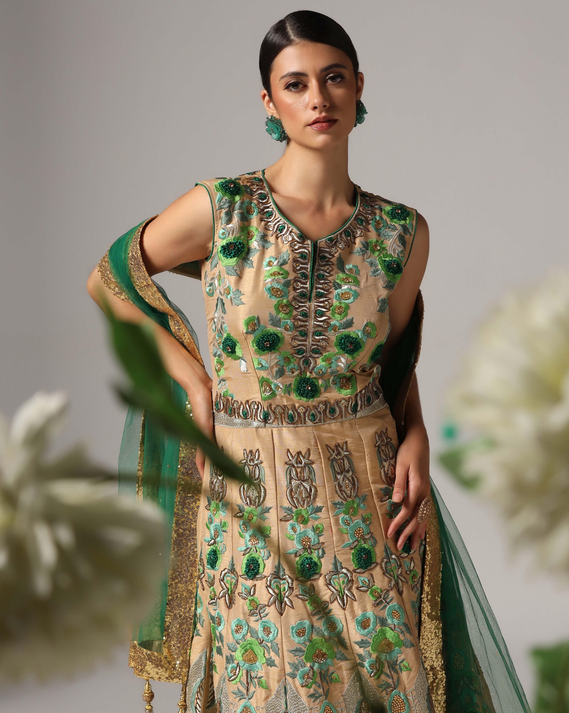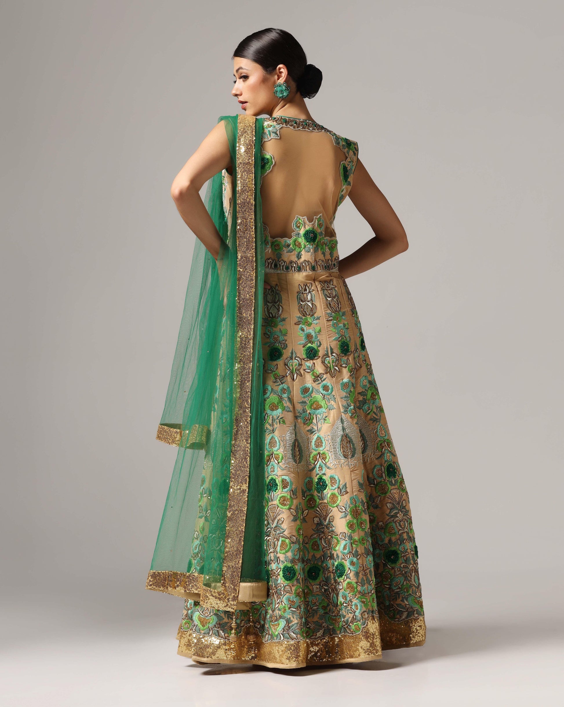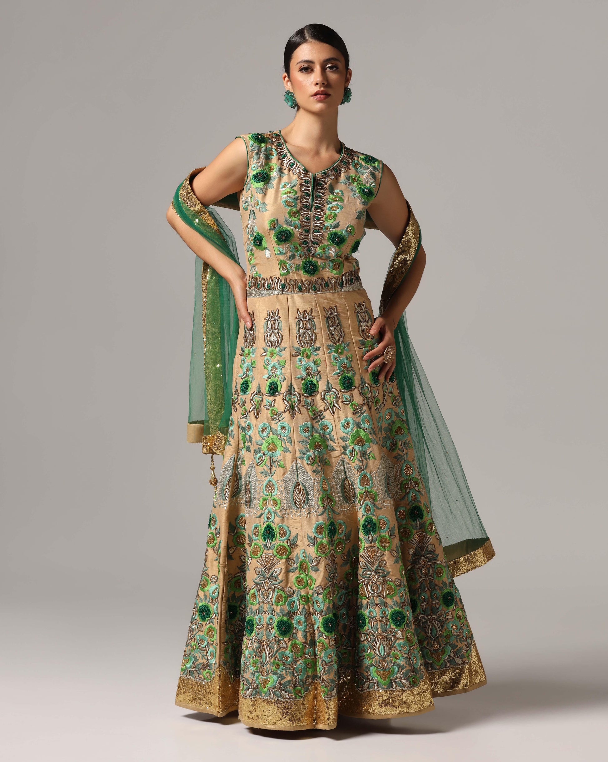 Gold thread embroided anarkali