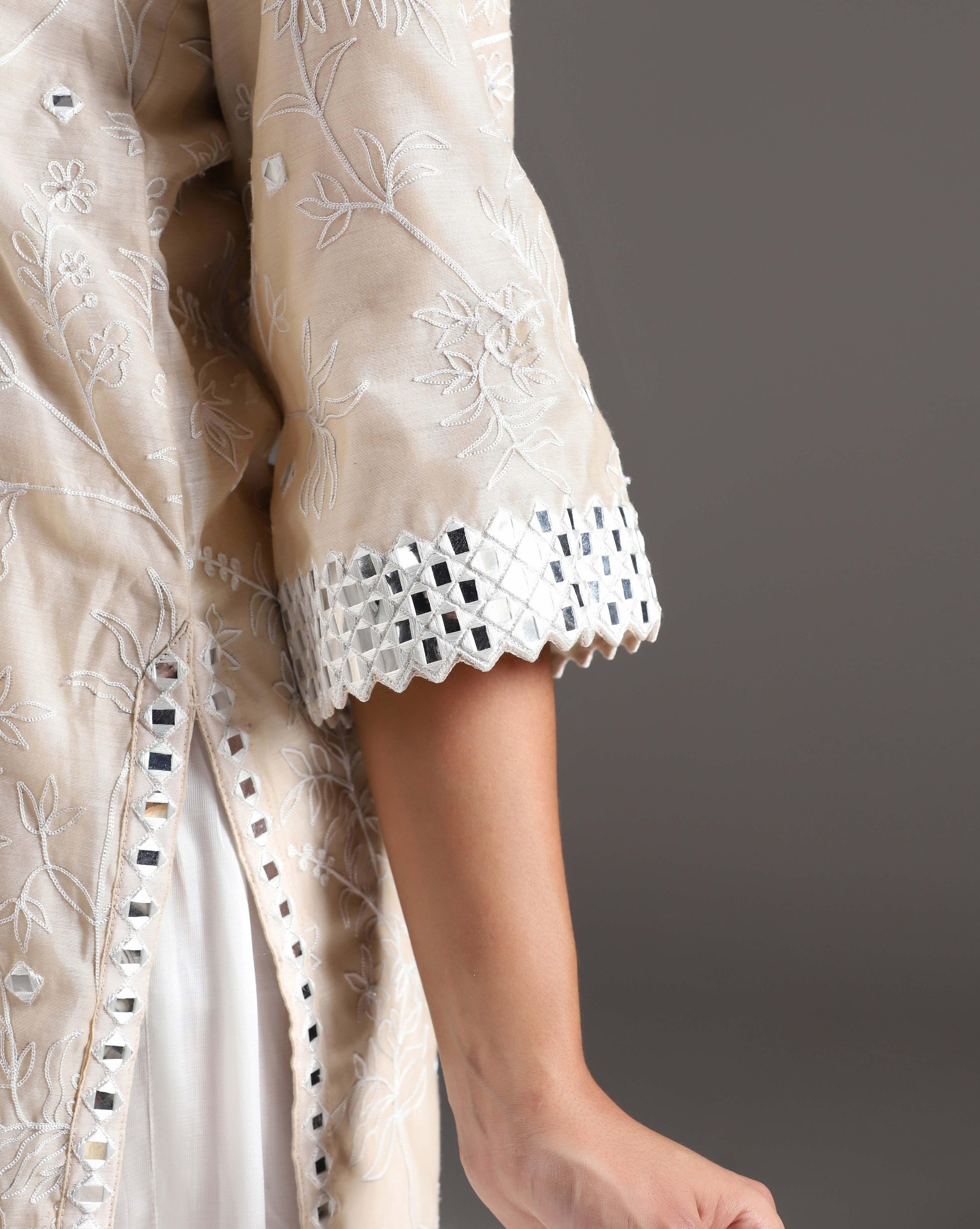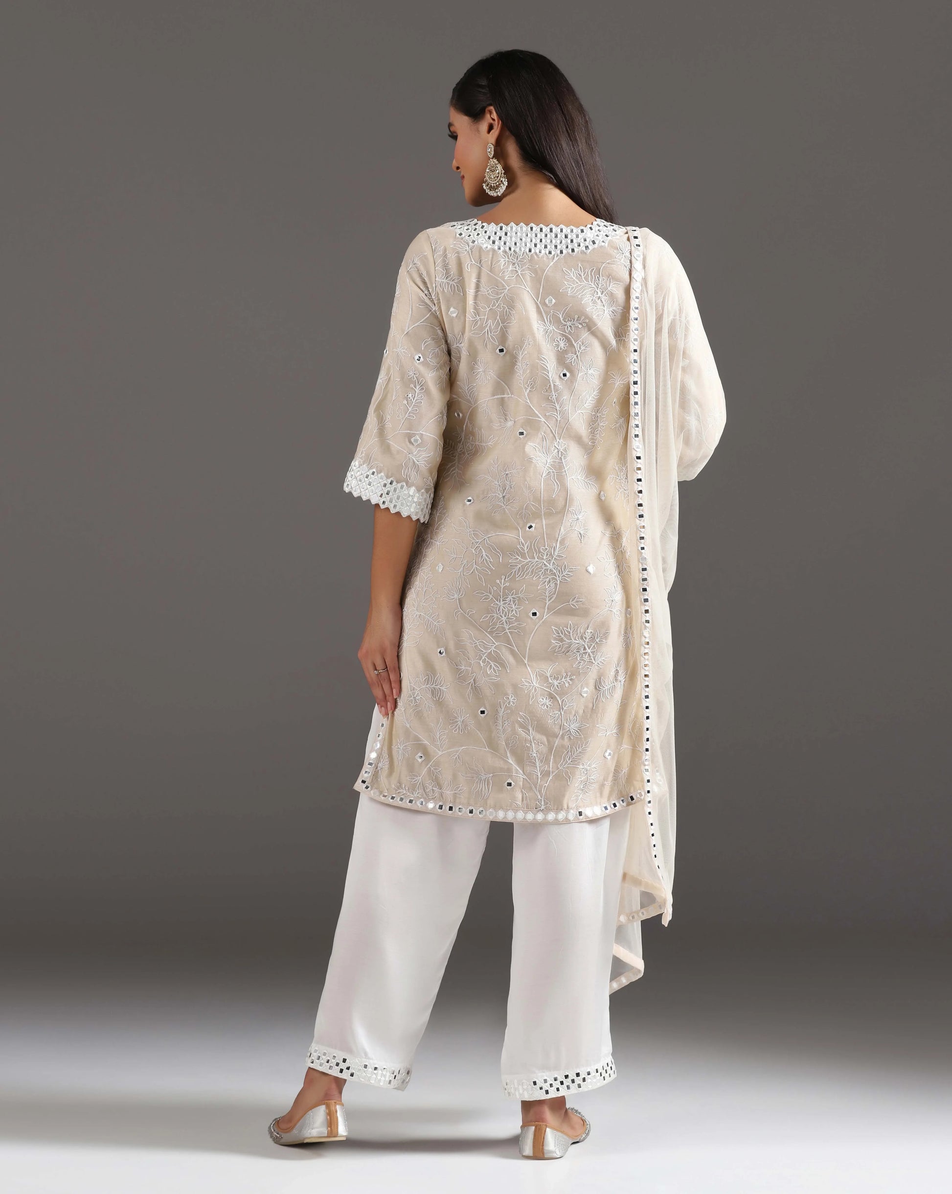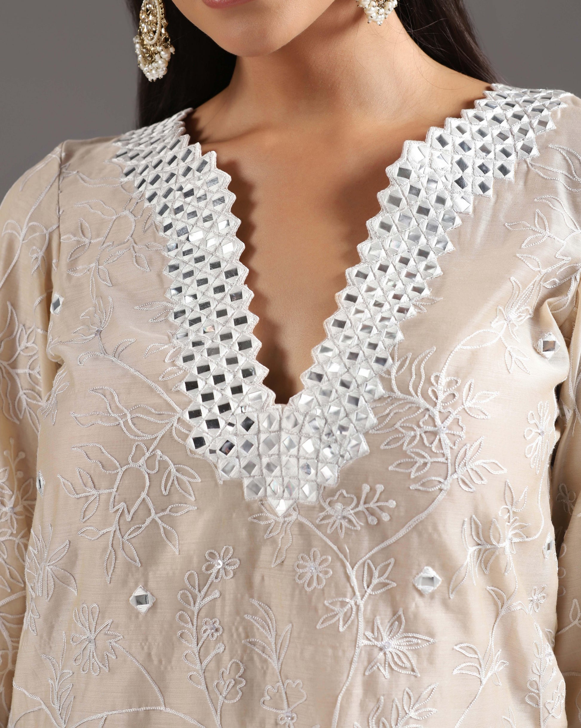 Ivory mirror embroidered kurti set