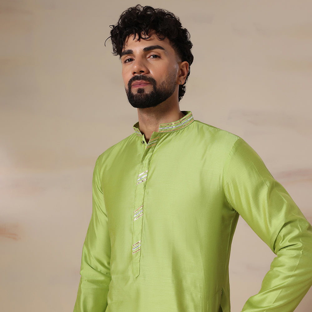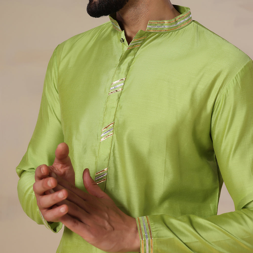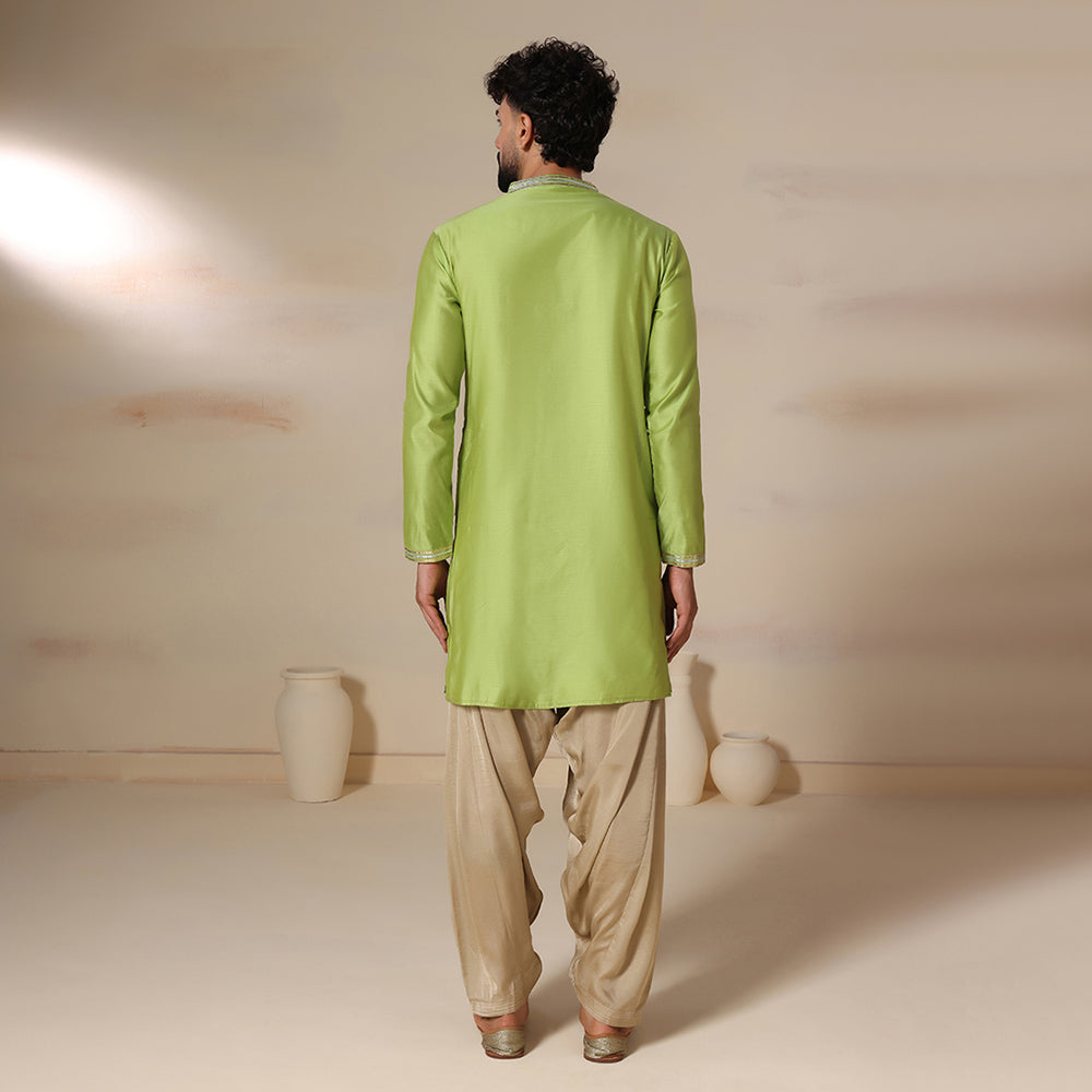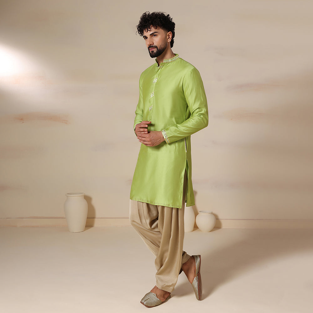 Mens green chanderi kurta salwar set