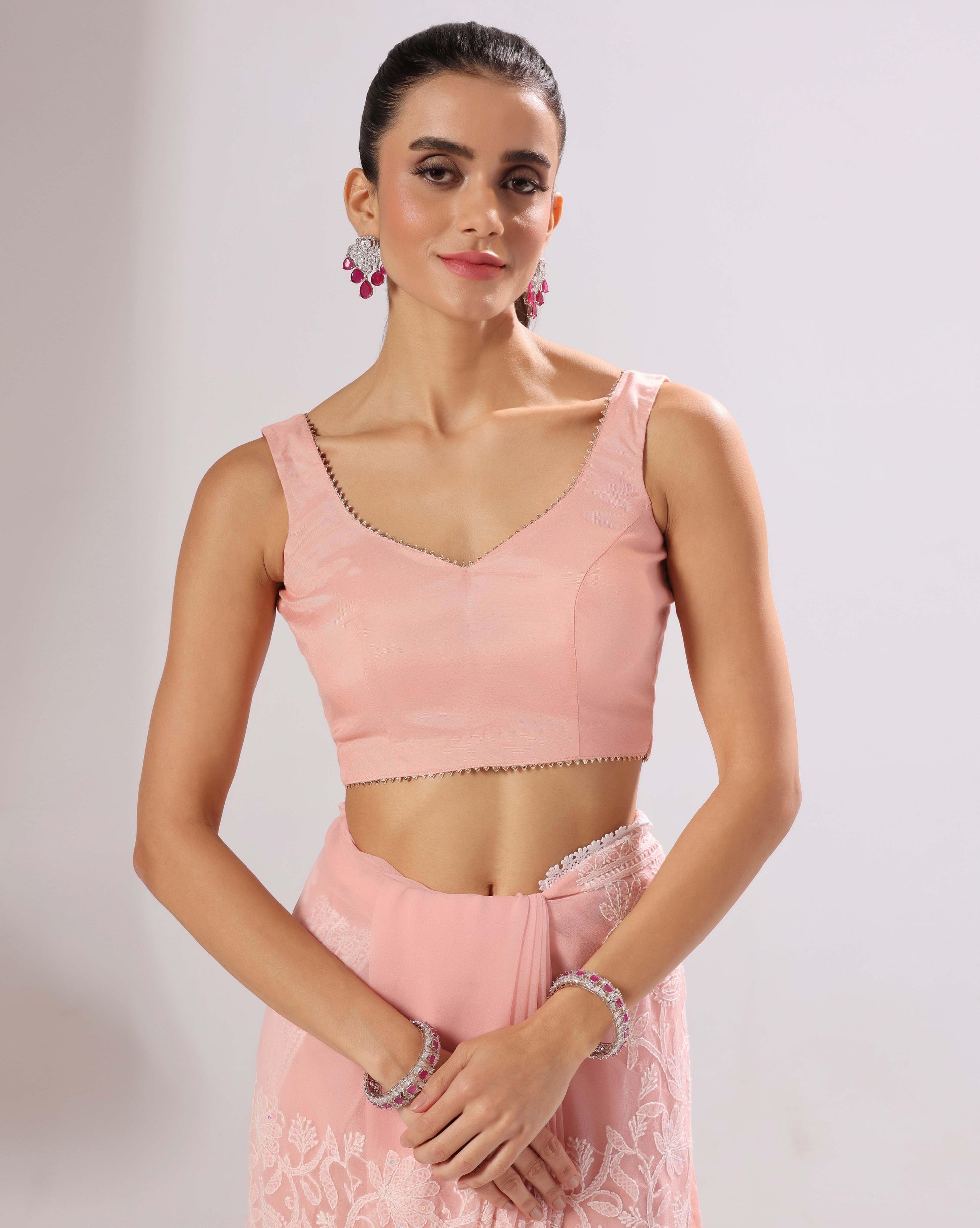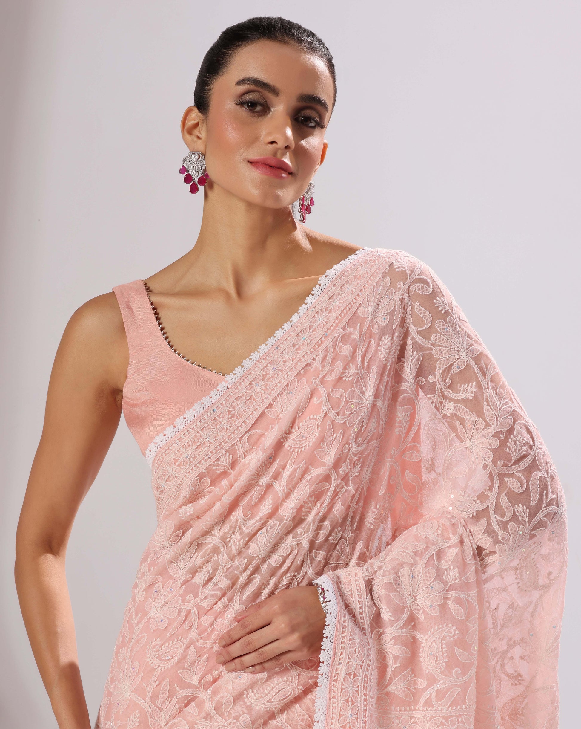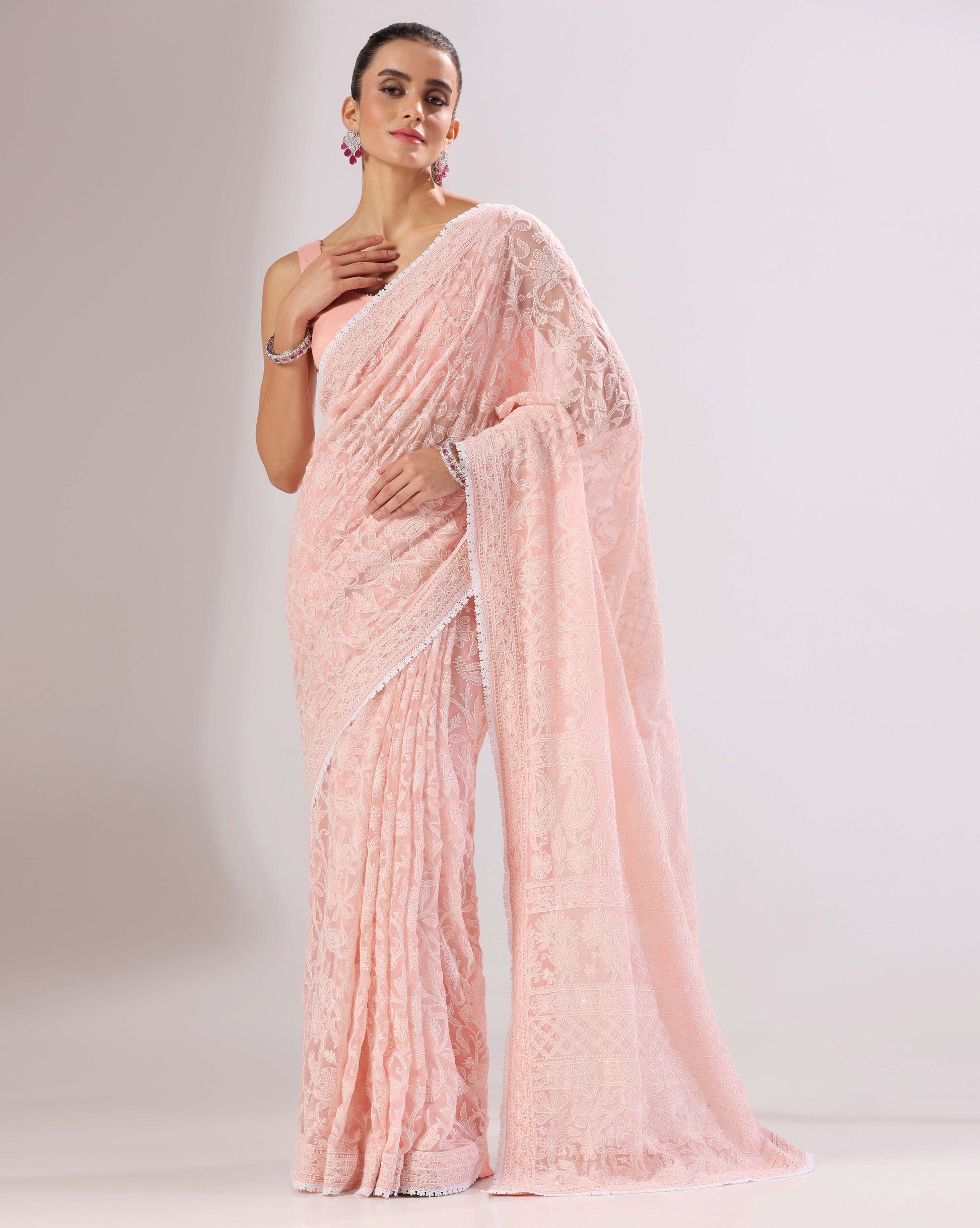 Peach chikankari saree