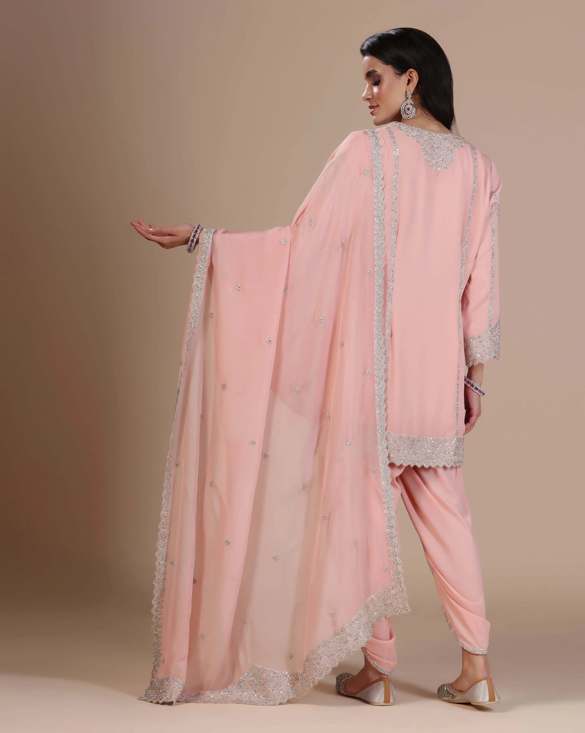 Peach pink kurta with tulip pants