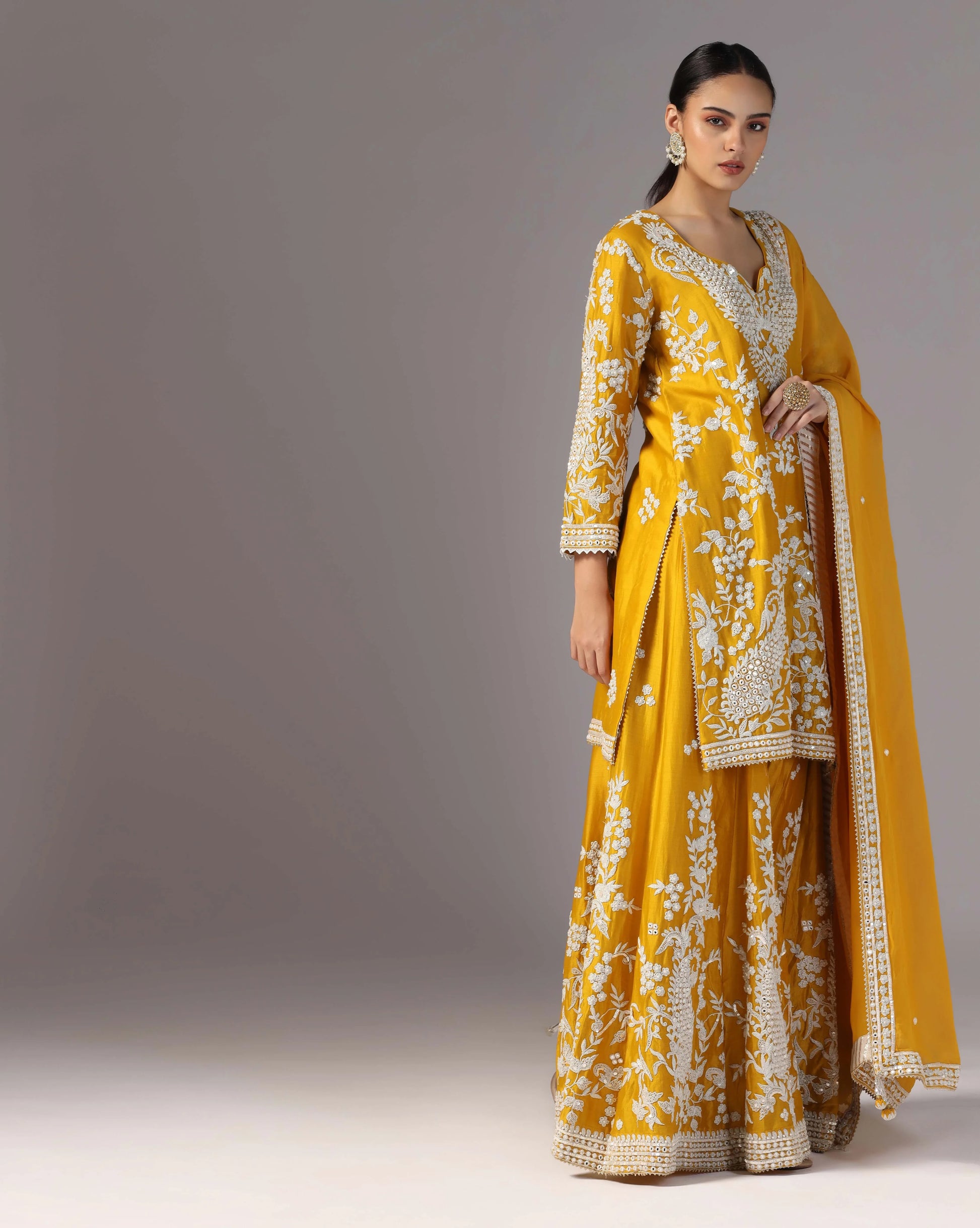 Sunlit charm:Yellow dori work kurta sharara